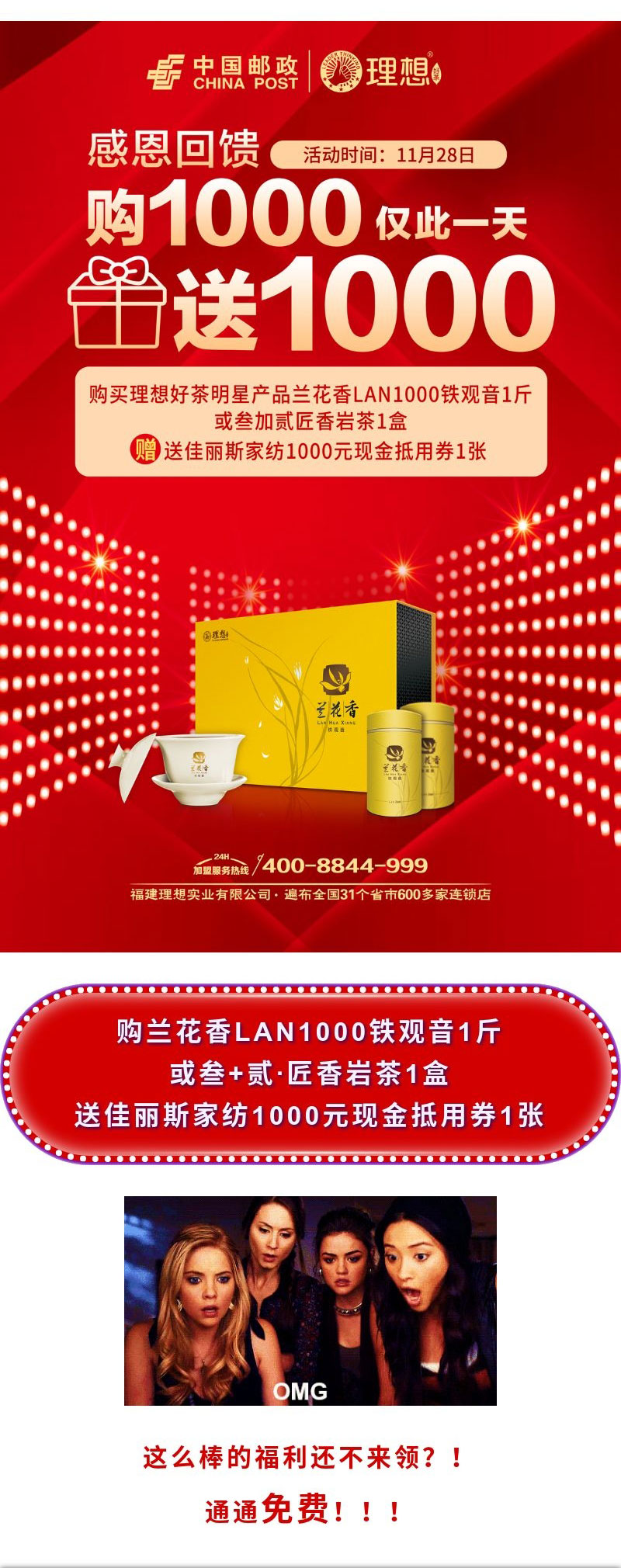 買1000送1000 僅感恩節(jié)一天│理想好茶攜手南安郵政放大招!