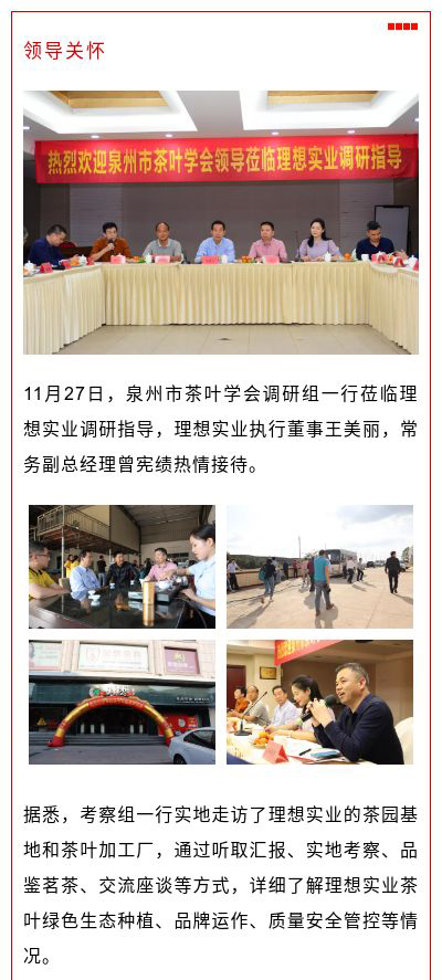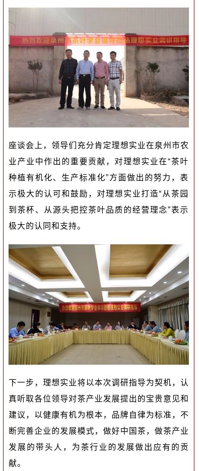 熱烈歡迎泉州市茶葉學(xué)會領(lǐng)導(dǎo)蒞臨理想實(shí)業(yè)調(diào)研指導(dǎo)