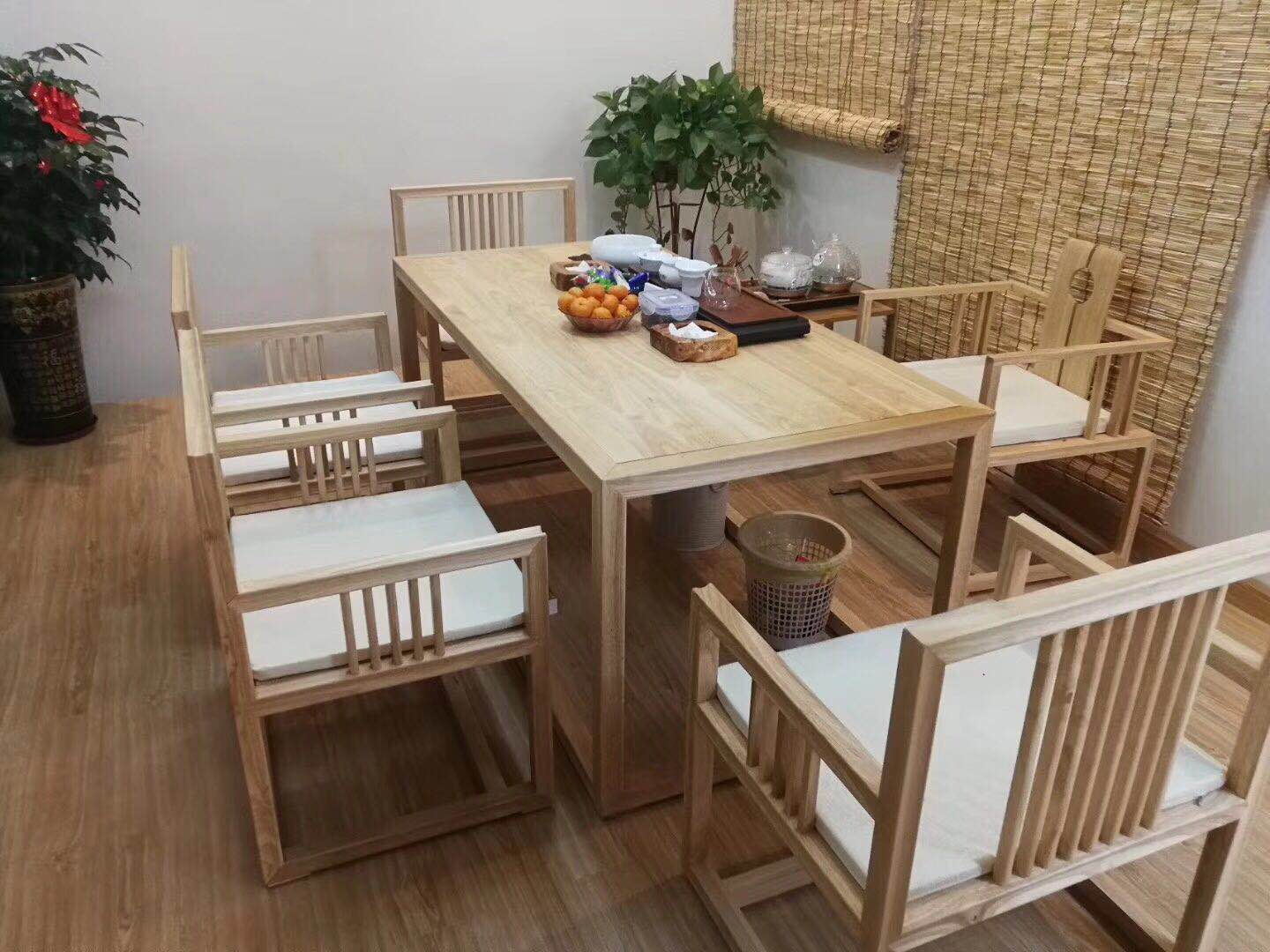 一套茶具,一束插花,幾張木椅