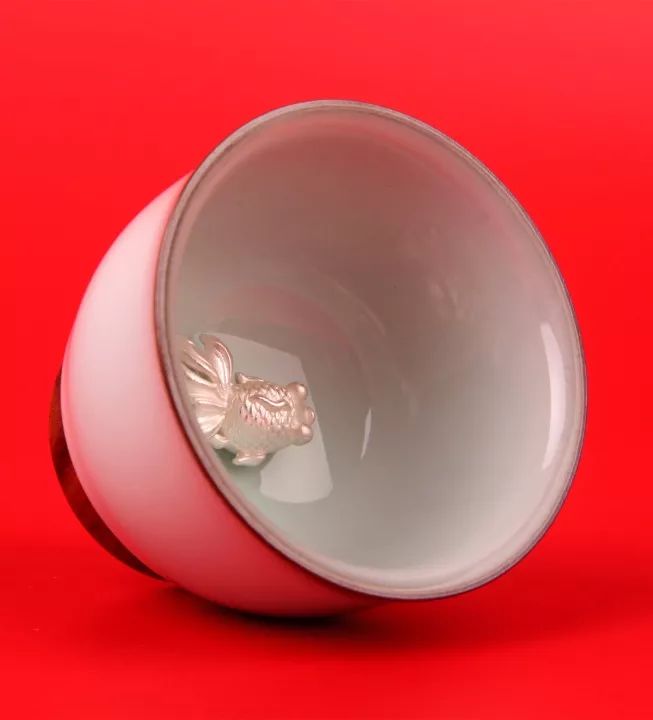 傳承宋代經(jīng)典,御用陶瓷之美。3D銀飾金魚,在茶湯的映襯下栩栩如生。一杯茶,魚兒水中游,充滿蓬勃生機(jī),寓意生命力旺盛,事業(yè)步步高升,年年有余。